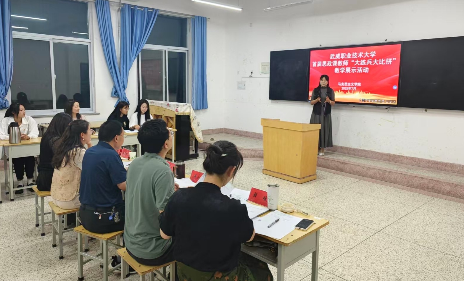 7月3日,武威職業(yè)技術(shù)大學(xué)首屆思政課教師“大練兵大比拼”教學(xué)展示活動在勵勤樓206教室成功舉辦?;顒又荚谕苿有聲r代思想政治理論課高質(zhì)量發(fā)展,提升思政課教師教學(xué)水平,打造高素質(zhì)思政課教師隊伍。