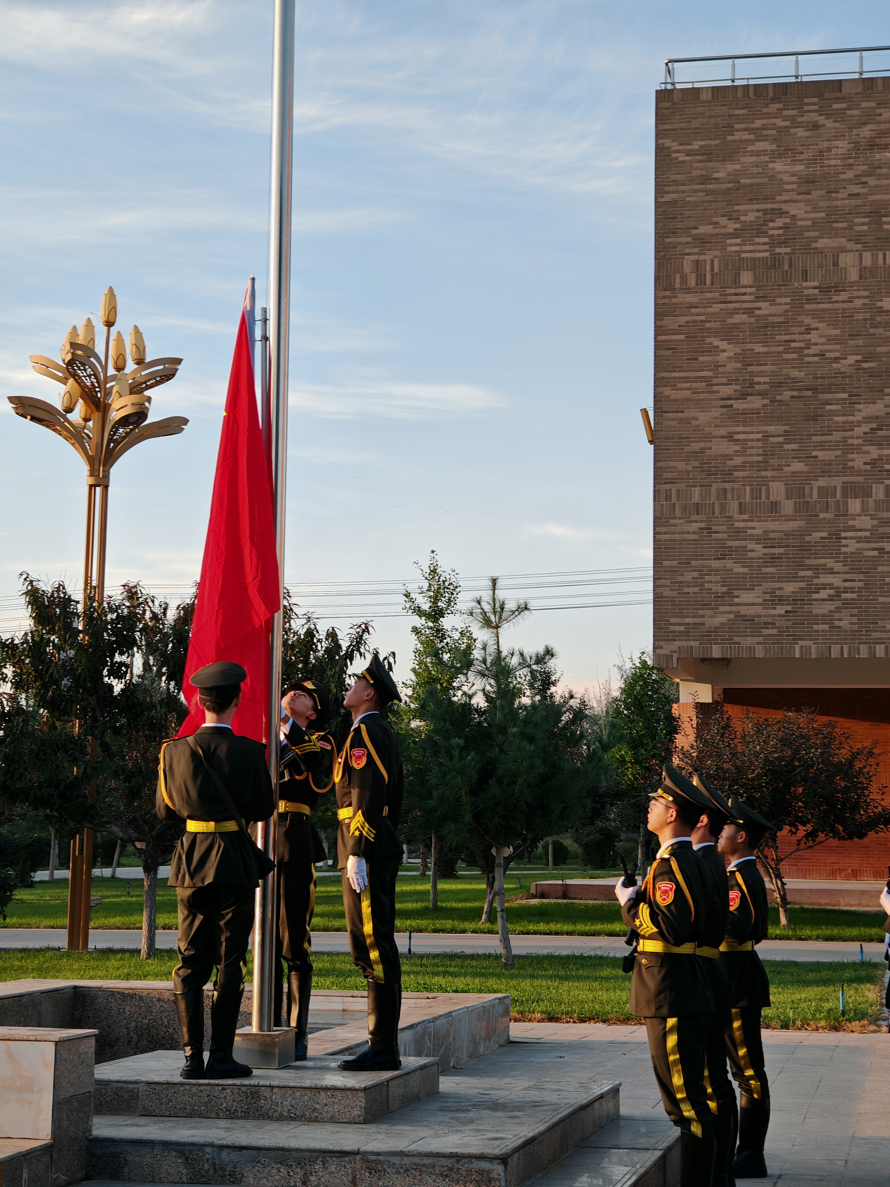 當《義勇軍進行曲》鏗鏘奏響,五星紅旗冉冉升起,每一道目光都堅定追隨,每一顆心都隨之激蕩。晨曦之中,國旗迎風(fēng)揚起的不只是一抹紅,更是一份沉甸甸的民族自豪與時代使命。這一刻,沒有言語,卻有無聲的力量在凝聚;沒有口號,卻有熾熱的情感在流淌。昂揚的斗志被點燃,深厚的家國情懷在每一位在場師生心中自然生發(fā)。他們用注視表達著對祖國的敬意。