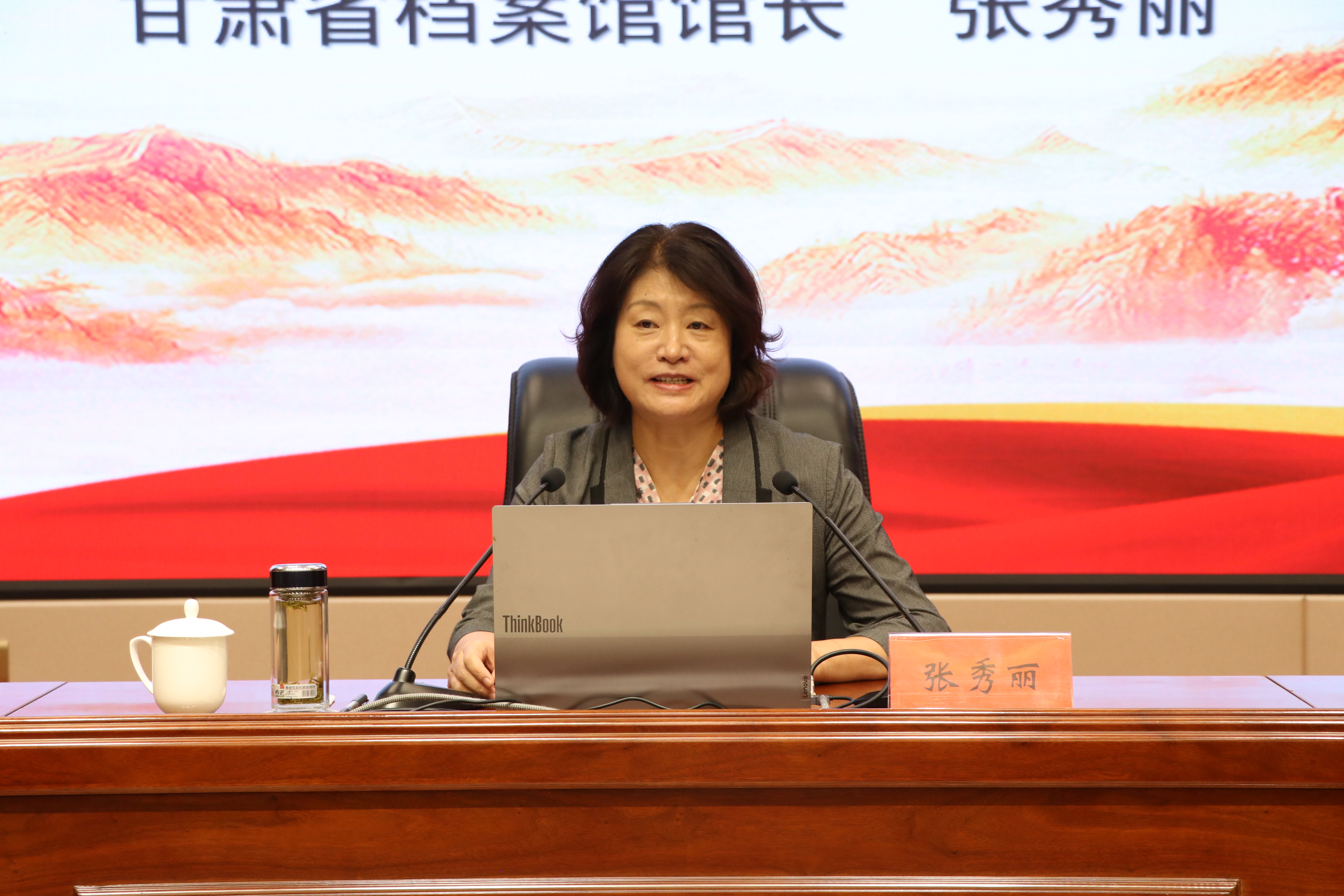 張秀麗結(jié)合自身從事檔案管理和文化研究的豐富經(jīng)驗,從檔案“存史、資政、育人”根本任務(wù)出發(fā),通過大量珍貴檔案文獻和歷史案例,系統(tǒng)闡述了檔案在記錄民族苦難輝煌、服務(wù)當(dāng)代治國理政、培育時代新人中的重要作用。報告中,她以館藏漢代簡牘、革命烈士叢德滋00001號烈屬證、民勤治沙檔案、甘肅地震檔案等一批具有歷史代表性和地域特色的檔案為載體,帶領(lǐng)師生穿越時空,感受中華民族生生不息的精神力量,深刻解讀“勿忘昨天的苦難輝煌,無愧今天的使命擔(dān)當(dāng),不負(fù)明天的偉大夢想”的時代內(nèi)涵。