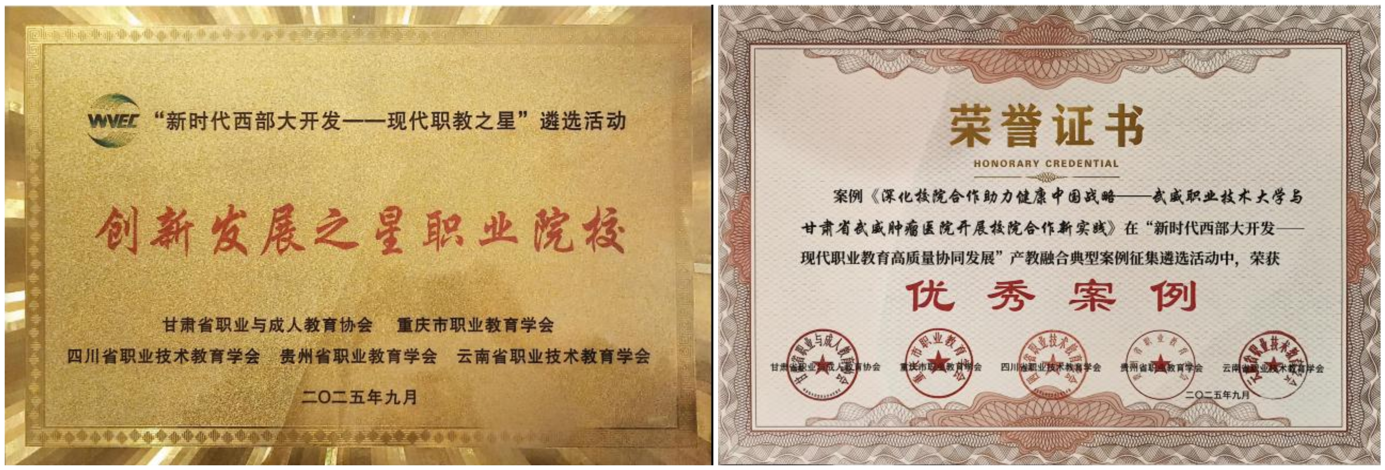 近日,從“新時(shí)代西部大開發(fā)——現(xiàn)代職業(yè)教育高質(zhì)量協(xié)同發(fā)展(蘭州)大會(huì)”上傳來喜訊,武威職業(yè)技術(shù)大學(xué)在甘肅省職業(yè)與成人教育協(xié)會(huì)組織的“新時(shí)代西部大開發(fā)——現(xiàn)代職教之星”和“新時(shí)代西部大開發(fā)——產(chǎn)教融合典型案例”征集遴選活動(dòng)中榮獲兩項(xiàng)重要榮譽(yù)。學(xué)校獲評“創(chuàng)新發(fā)展之星職業(yè)院?!?,《深化校院合作助力健康中國戰(zhàn)略——武威職業(yè)技術(shù)大學(xué)與甘肅省武威腫瘤醫(yī)院開展校院合作新實(shí)踐》榮獲“產(chǎn)教融合典型案例優(yōu)秀案例”。