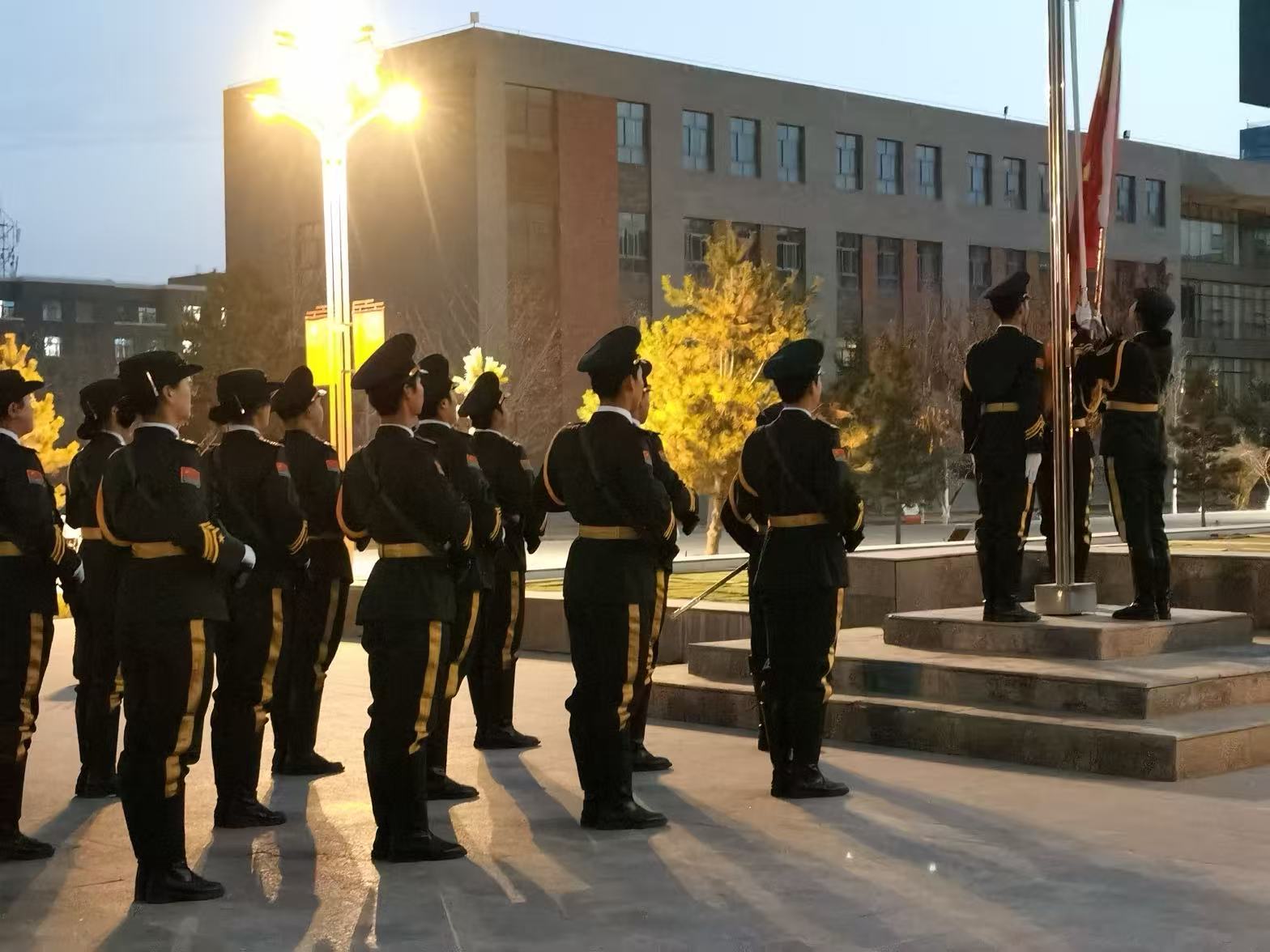 全體學生整齊列隊,伴隨著莊嚴的國歌,注視著國旗護衛(wèi)隊護送五星紅旗冉冉升起,展現了學院學子昂揚向上的精神風貌。