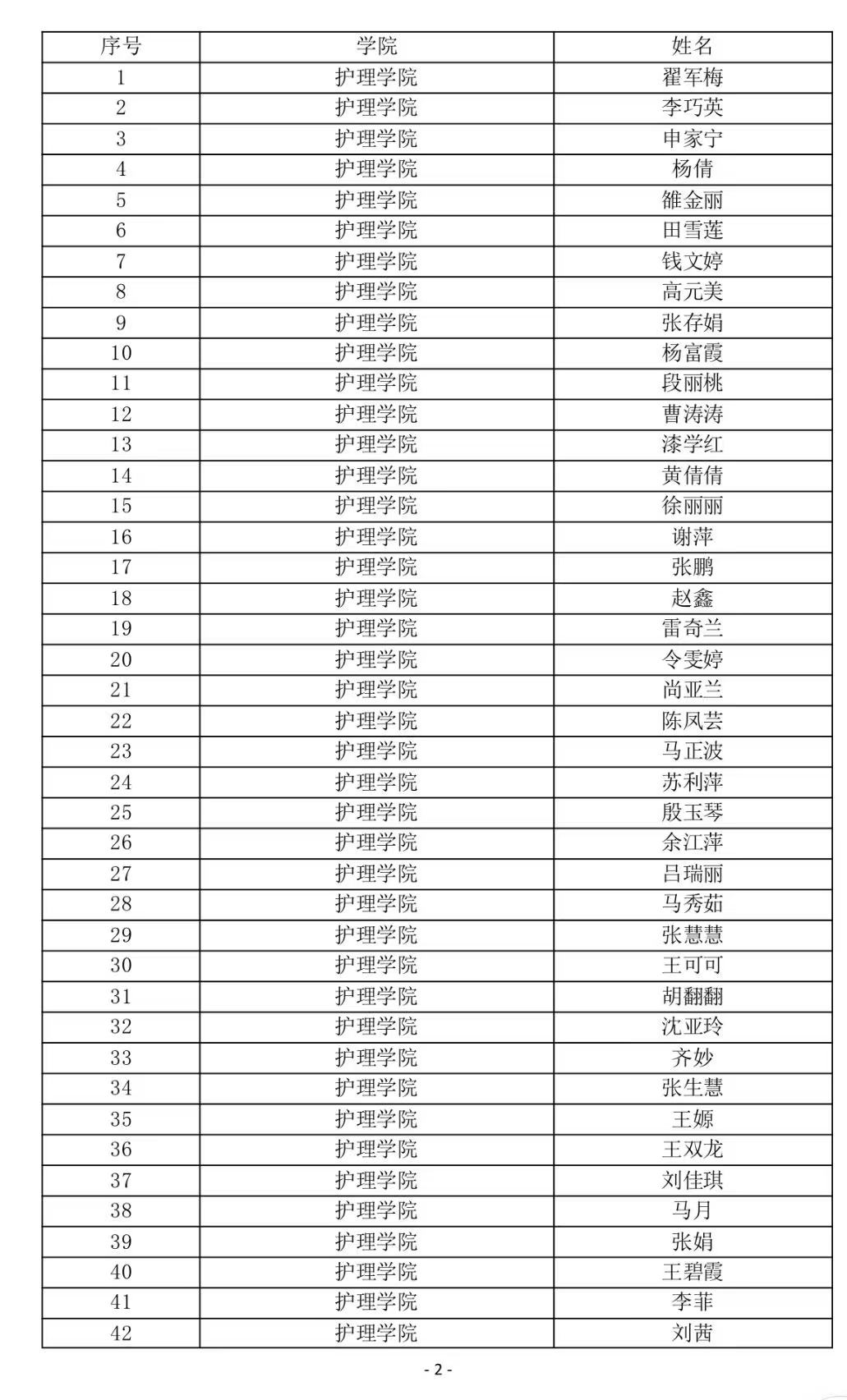 護理學院關(guān)于學校獎學金推薦人選的公示