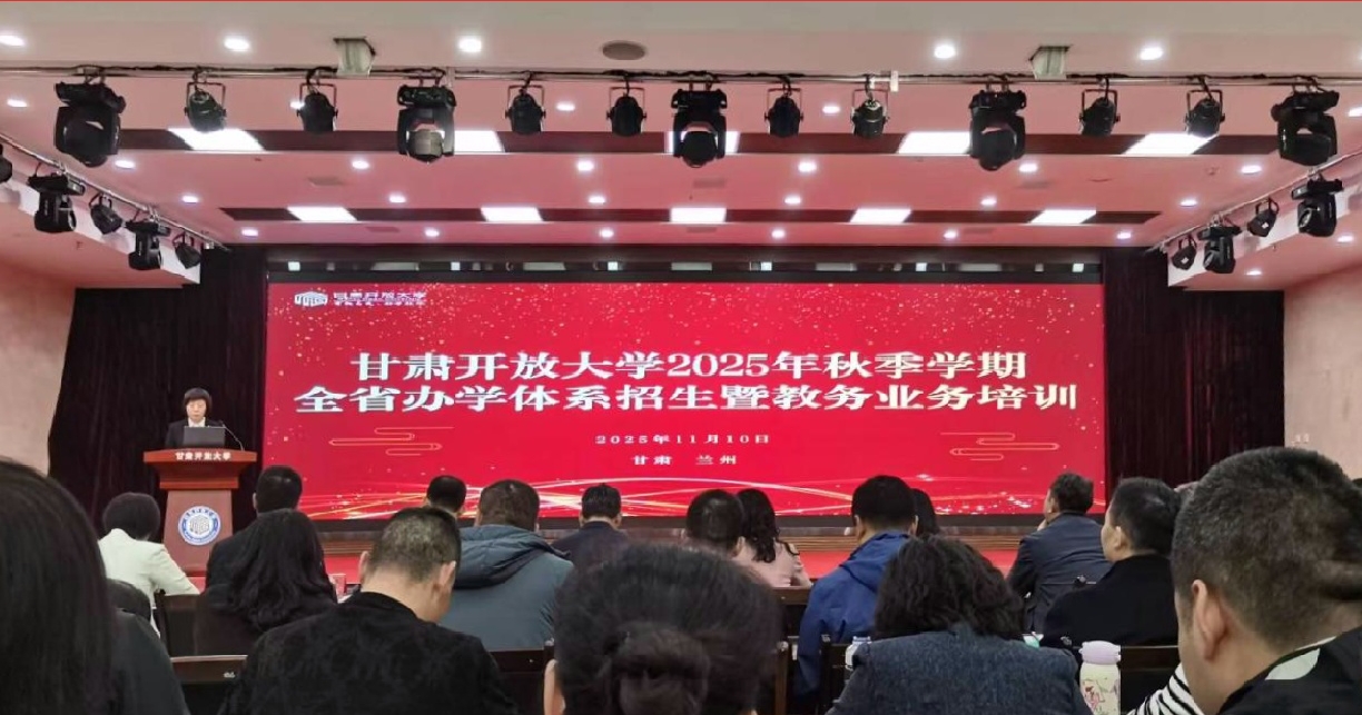 11月10日,甘肅開放大學(xué)召開2025年全省辦學(xué)體系招生暨教務(wù)業(yè)務(wù)培訓(xùn)會(huì),黨委委員、副校長(zhǎng)丁霞出席并講話,我校招生、教務(wù)管理人員張軍元、寇明赟、劉曉慶老師前往省校參加本次培訓(xùn)會(huì)議。