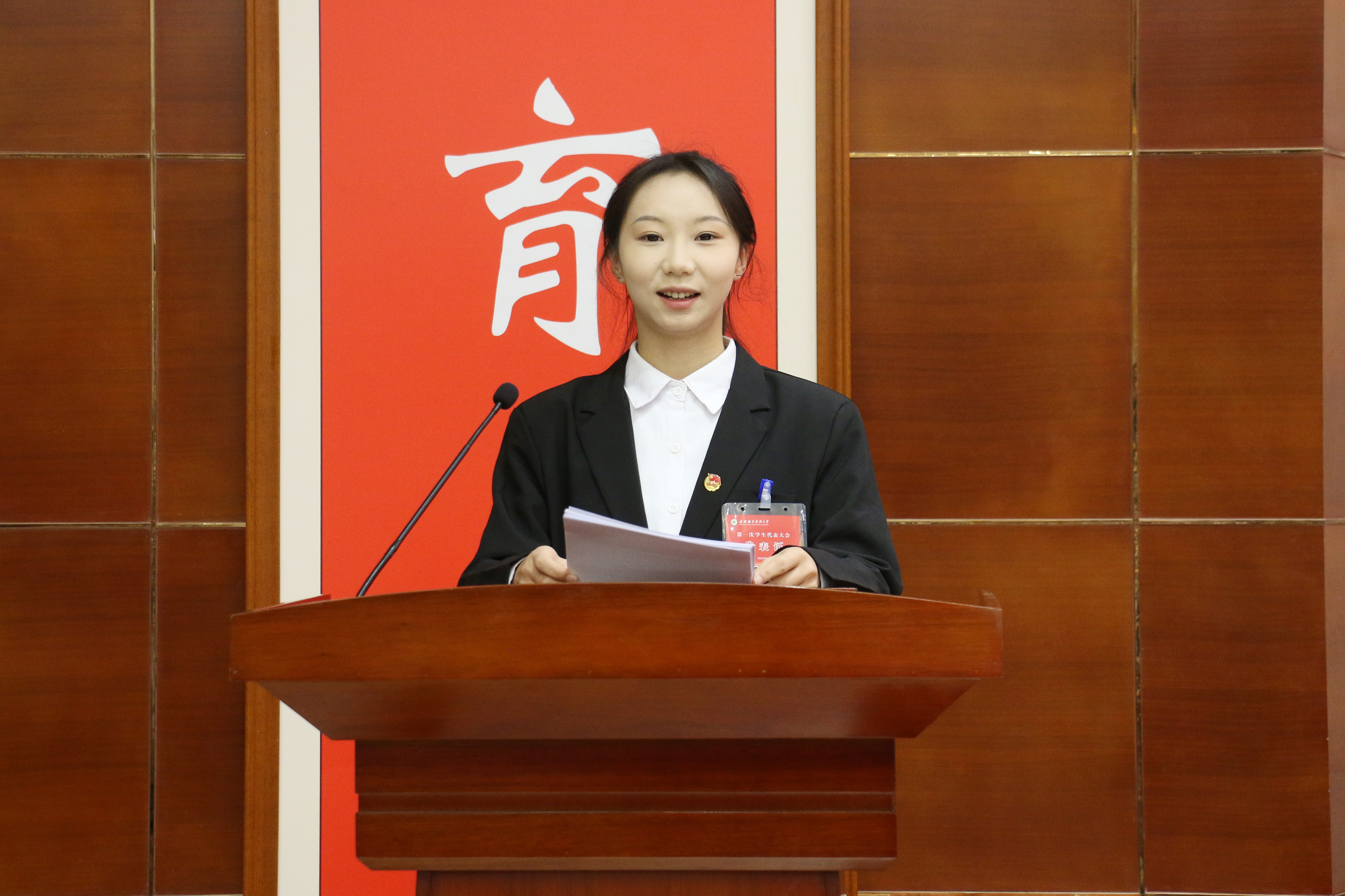 學(xué)校學(xué)生會(huì)主席團(tuán)成員李?lèi)偼瑢W(xué)代表第十一屆學(xué)生會(huì)委員會(huì)向大會(huì)作題為《奮楫篤行啟新程 挺膺擔(dān)當(dāng)筑夢(mèng)行,團(tuán)結(jié)帶領(lǐng)廣大同學(xué)在建設(shè)特色鮮明的高水平職業(yè)技術(shù)大學(xué)中貢獻(xiàn)青春力量》的工作報(bào)告。