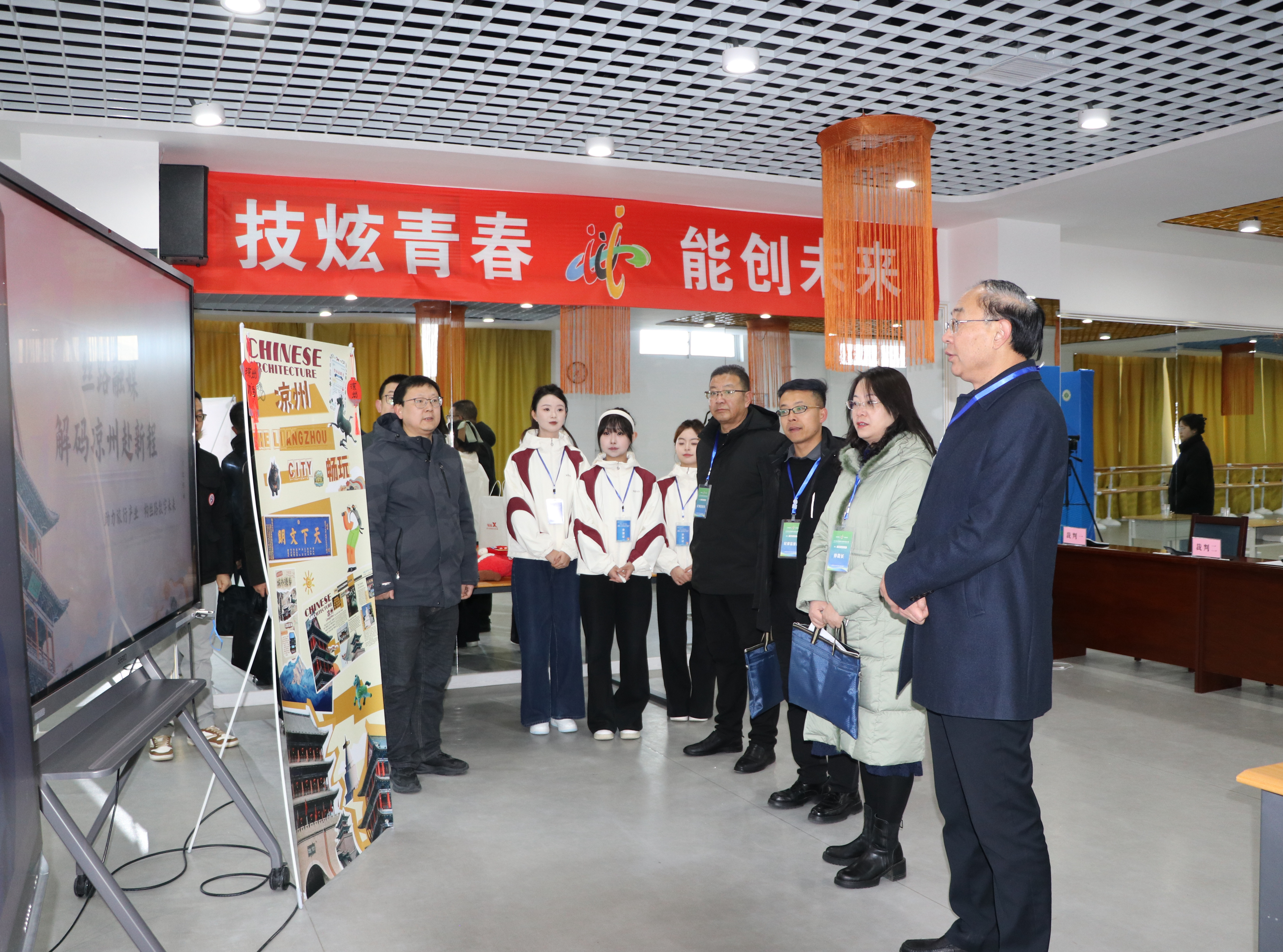 12月21日,學(xué)校黨委書(shū)記王宏帶隊(duì)深入學(xué)校承辦的甘肅省2026年職業(yè)院校技能大賽比賽現(xiàn)場(chǎng),實(shí)地巡查高職組新聞傳播賽道、新一代信息技術(shù)賽道的比賽情況。賽點(diǎn)監(jiān)督仲裁組組長(zhǎng)汪霞、成員王立榮、陳曉煜,學(xué)校教務(wù)處負(fù)責(zé)同志一同巡查。