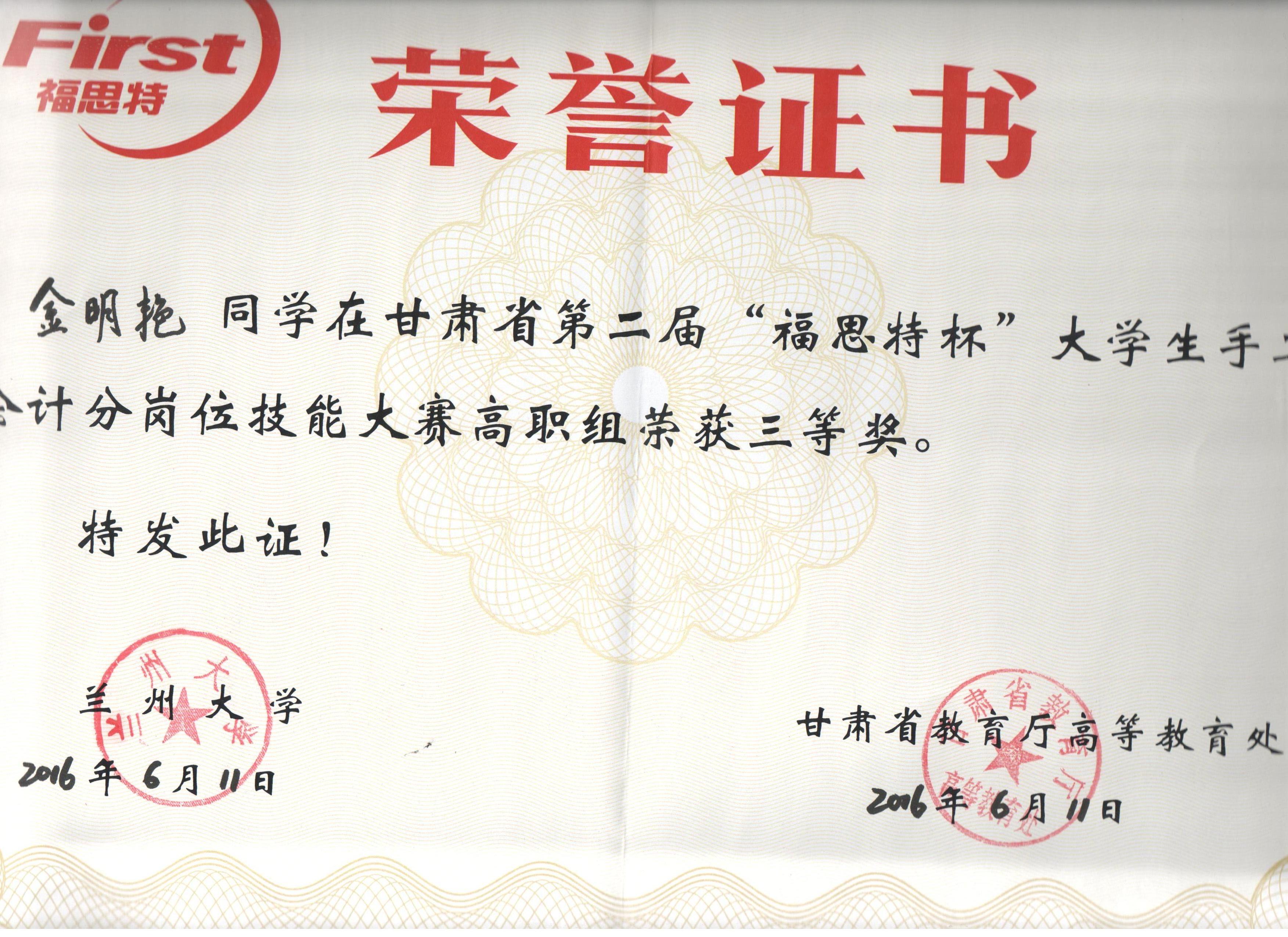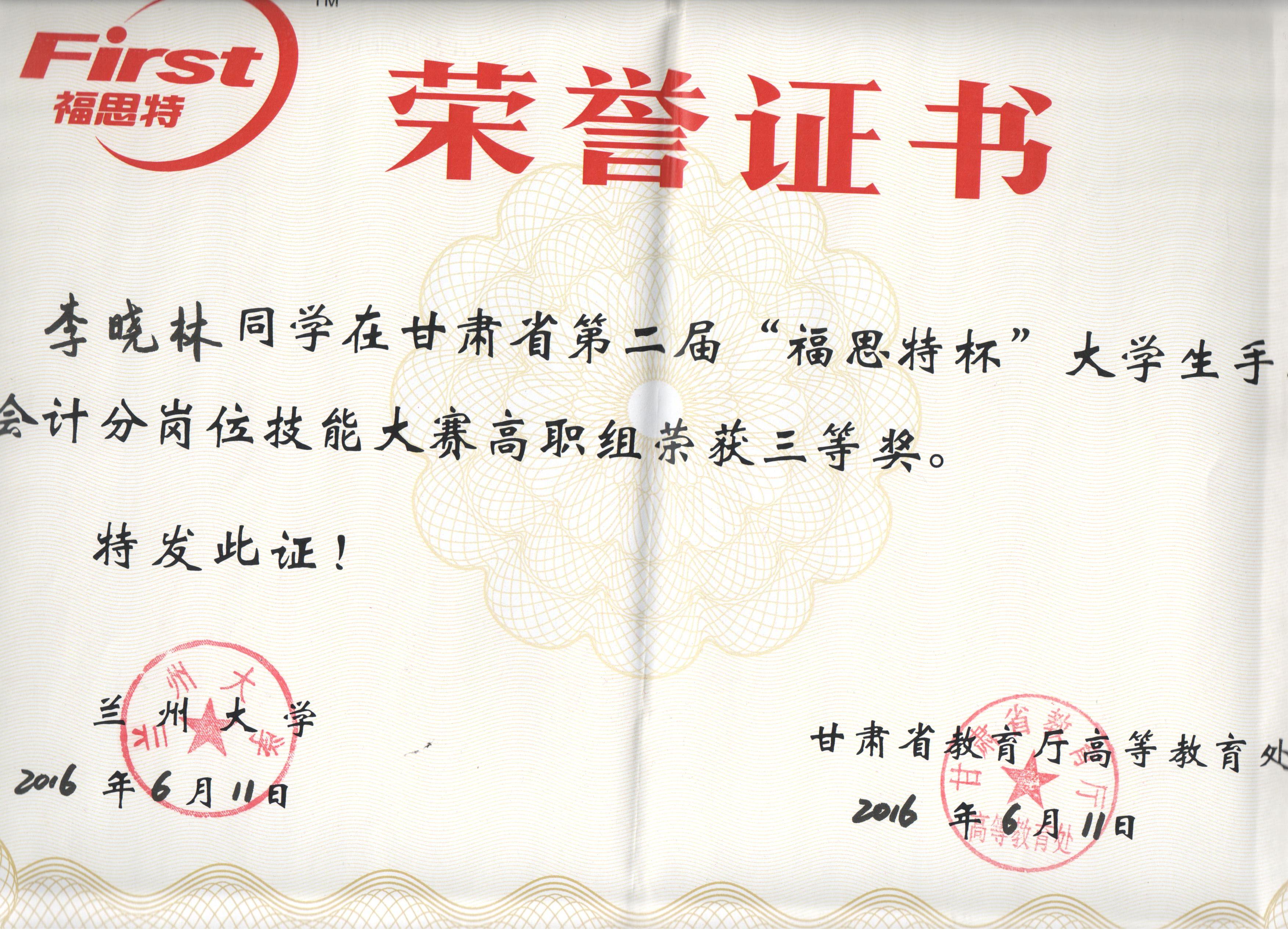 經(jīng)濟(jì)管理系李惠蘭老師指導(dǎo)我系會計(jì)專業(yè)學(xué)生參加甘肅省第二屆“福思特”大學(xué)生手工會計(jì)分崗位技能競賽,榮獲高職組三等獎。