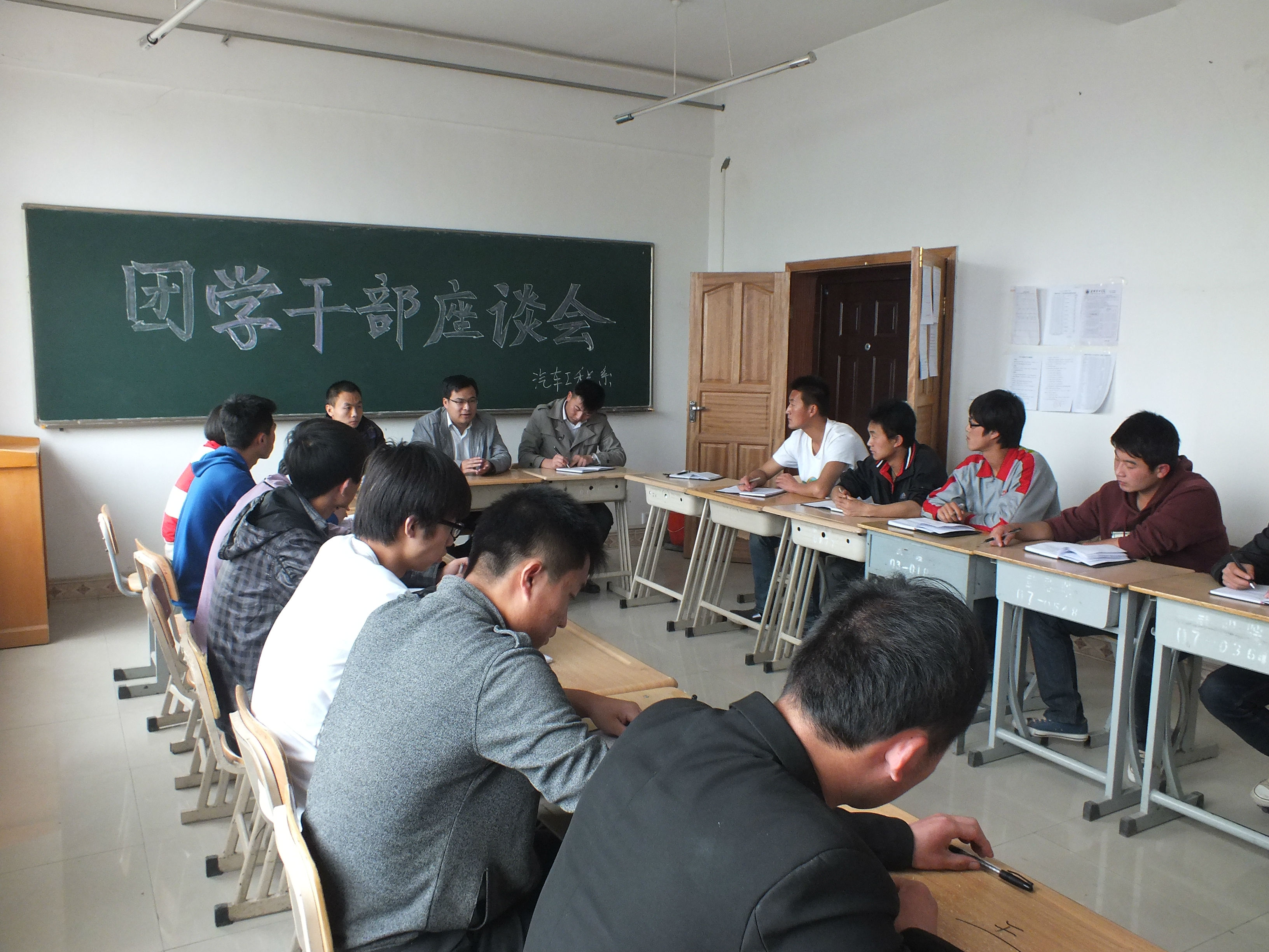 5月7日下午,我系團(tuán)學(xué)干部座談會(huì)在實(shí)訓(xùn)樓209舉行。汽車工程系主任王鐸云出席了會(huì)議。政治輔導(dǎo)員劉成老師,團(tuán)總支書記劉吉仁老師,學(xué)生會(huì)主席,各班班干部等20余人參加大會(huì),大會(huì)由劉吉仁老師主持。