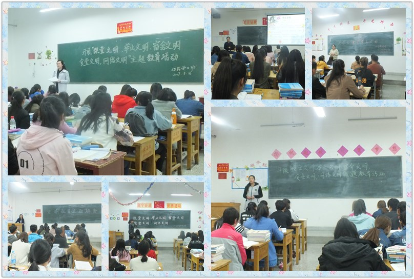 各班班會(huì)從什么是文明講起,聯(lián)系生活實(shí)際,講述校園文明、家庭文明和社會(huì)文明的重要性。各班主任首先向同學(xué)們闡述了對(duì)于當(dāng)代大學(xué)生來說,文明修身和專業(yè)學(xué)習(xí)同等重要,專業(yè)學(xué)習(xí)主要培養(yǎng)大學(xué)生的科學(xué)精神,而文明修身主要培養(yǎng)大學(xué)生的人文精神,二者缺一不可。通過講述身邊同學(xué)的故事,指出校園、家庭和社會(huì)上存在的不文明、不和諧現(xiàn)象,要求同學(xué)們對(duì)自身言行舉止進(jìn)行約束,共同攜手,提高自身文明行為,提升大家的思想道德和人文素質(zhì)。隨后,由同學(xué)們就“文明行為”發(fā)表了自己的看法,大家由主題聯(lián)想到自己身邊的一些不文明的行為,并就這些不文明行為發(fā)表了自己觀點(diǎn),同時(shí),同學(xué)們就如何提高自身道德素養(yǎng)、如何更好地做到文明修身提出了自己的建議和意見。經(jīng)過同學(xué)們的積極發(fā)言和認(rèn)真討論,大家認(rèn)為只有文明的個(gè)人才會(huì)有文明的班級(jí)團(tuán)體,才會(huì)有文明的校園,才會(huì)有和諧的社會(huì)。