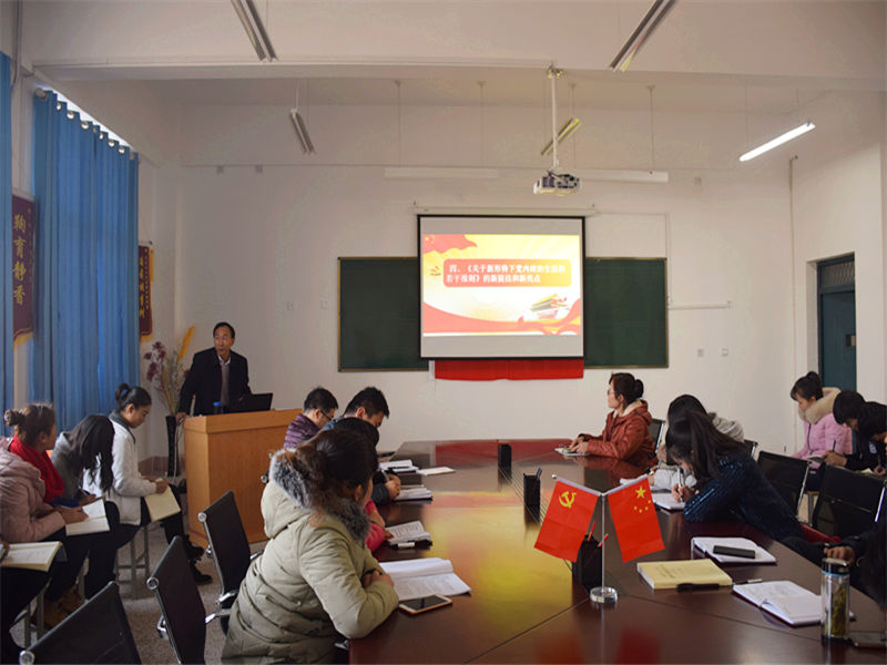 報(bào)告會重點(diǎn)從十八屆六中全會的重大成果及意義、為何聚焦“從嚴(yán)治黨”、十八屆六中全會為全面從嚴(yán)治黨做出的重要貢獻(xiàn)、《關(guān)于新形勢下黨內(nèi)政治生活的若干準(zhǔn)則》的新提法新亮點(diǎn)、《中國共產(chǎn)黨黨內(nèi)監(jiān)督條例》的新提法新亮點(diǎn)五個(gè)方面給師生做了解讀。