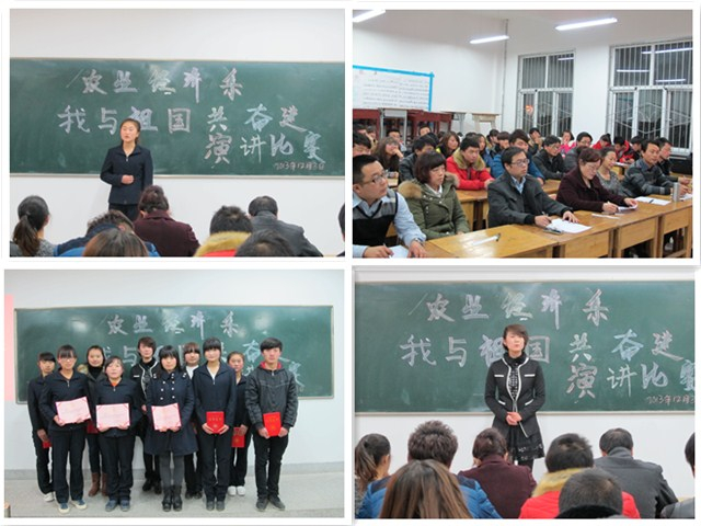 為紀(jì)念“12.9”學(xué)生愛國運動78周年,大力弘揚愛國主義精神,進一步增強廣大青年學(xué)子社會責(zé)任感與歷史使命感,展現(xiàn)我系學(xué)生朝氣蓬勃,奮發(fā)進取的精神面貌,我系舉辦第三屆“我與祖國共奮進”主題演講比賽。農(nóng)業(yè)經(jīng)濟系主任晏素珍、黨總支負責(zé)人蔡飛及系部教師觀看演講比賽并點評。