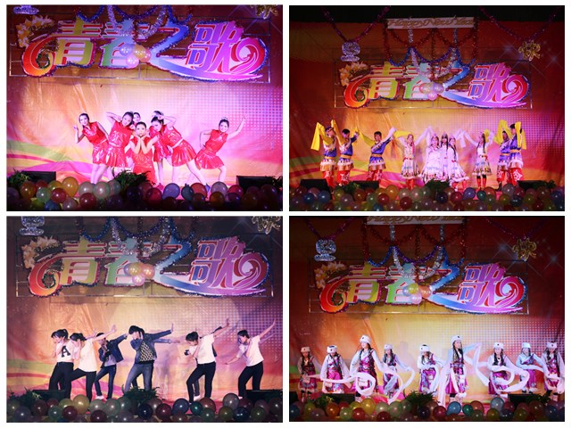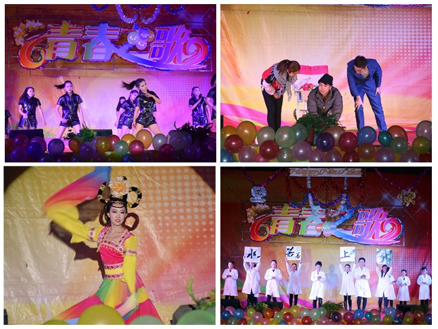 本次晚會(huì)以“青春之歌,歡送畢業(yè)生”為主題,共表演了17個(gè)精彩節(jié)目。晚上7點(diǎn)整,開場舞《倍兒爽》、《小蘋果》為整臺晚會(huì)拉開了帷幕。在晚會(huì)上,《格桑拉》、《吉祥謠》及《青春踢踏》等少數(shù)民族舞蹈,體現(xiàn)了五十六個(gè)民族大團(tuán)結(jié),互相共融的感情;《感恩的心》表達(dá)了學(xué)生們對老師一年來孜孜不倦、淳淳教誨的感恩之情;《天下父母心》表達(dá)了對父母的養(yǎng)育之恩的感謝;舞蹈《驚鴻舞》和《The boys》等給觀眾帶來了別樣的風(fēng)情,展現(xiàn)出青年學(xué)子活力青春;大型舞蹈《致那些年逝去的青春》和《夢回敦煌》帶給觀眾視覺盛宴;舞蹈《串燒》結(jié)合了幾首近幾年流行的膾炙人口的歌曲,將不同舞蹈串燒一起。青春現(xiàn)代舞《Expect》將整個(gè)晚會(huì)推向高潮。