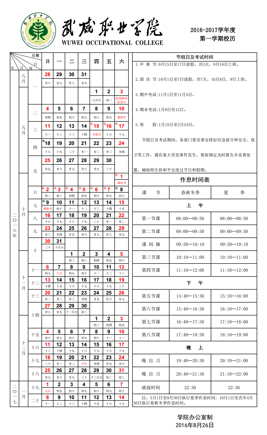 武威職業(yè)技術(shù)大學2025年10月份值班值守安排表