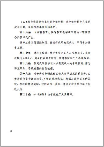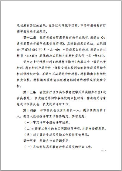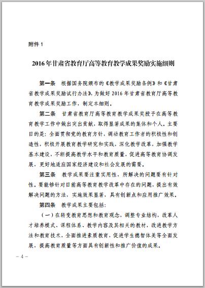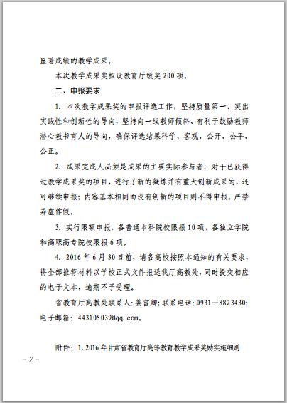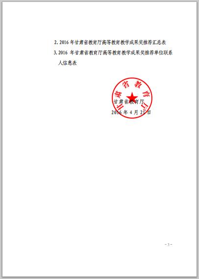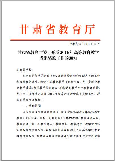 甘肅省教育廳關于開展2016年高等教育教學成果獎勵工作的通知