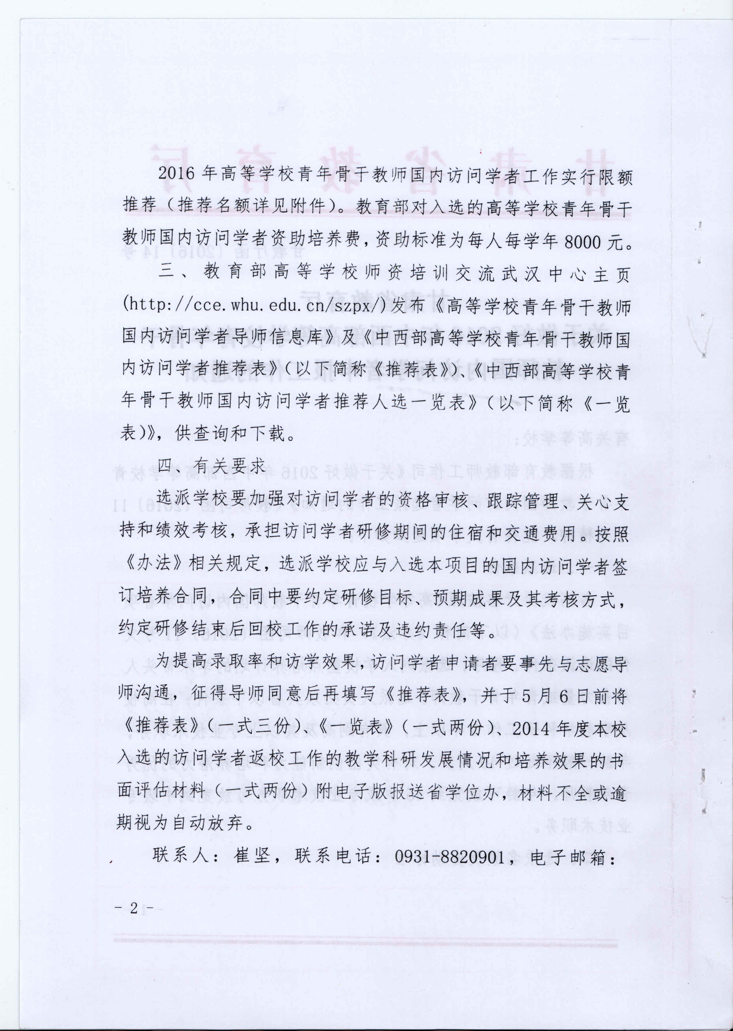 關(guān)于做好2016年青年骨干教師國內(nèi)訪問學(xué)者申報(bào)工作的通知