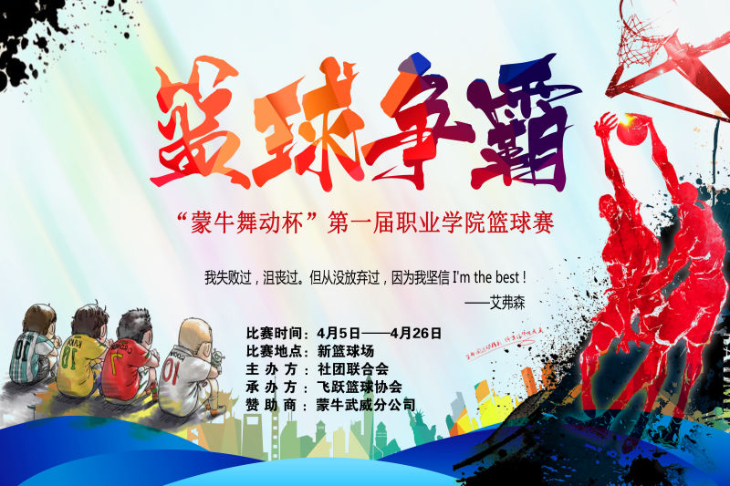 武威職業(yè)學(xué)院院團(tuán)委聯(lián)合學(xué)生社團(tuán)聯(lián)合會(huì)組織的第一屆“蒙牛舞動(dòng)杯”全?;@球爭(zhēng)霸賽開(kāi)賽啦,期待您的加入!