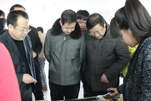 翟存祥在展區(qū)指出,本次作品展作品設計多樣,內涵豐富,比起前幾次取得了更大進步,可以作為骨干校建設成果,典型案例。他強調,應該精選一部分設計新穎、創(chuàng)新能力較強的作品留存,做為學院骨干校建設成果進行展示。