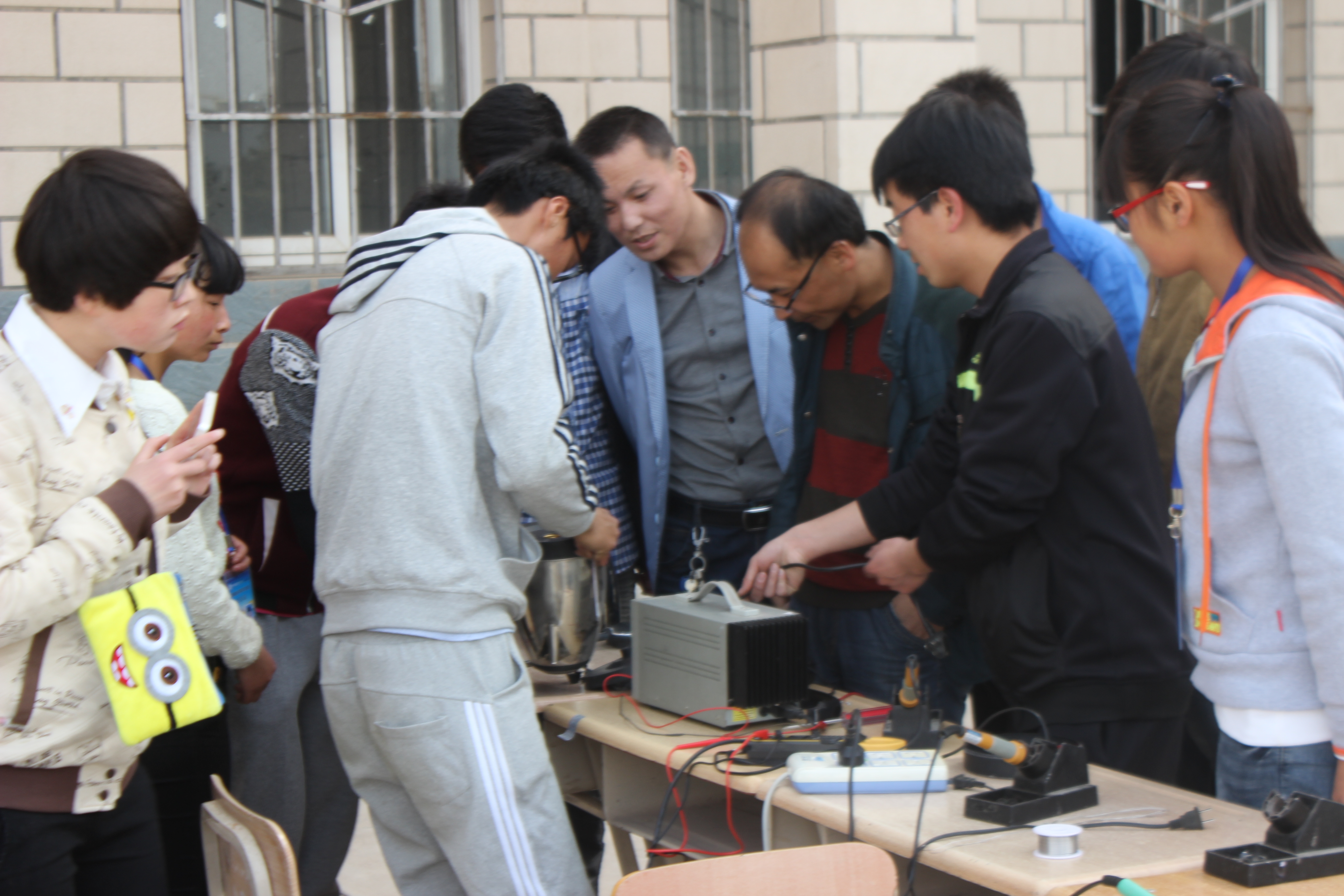 為引導(dǎo)廣大團(tuán)員青年積極參與青年志愿活動,發(fā)揚雷鋒精神,弘揚民族精神。4月15日至17日電子信息工程系小牛頓電子協(xié)會、青年志愿者協(xié)會在學(xué)院尚德樓北側(cè)廣場舉辦了“義務(wù)維修”活動。小牛頓電子協(xié)會結(jié)合協(xié)會自身特色,運用所學(xué)的專業(yè)技能,為全院師生免費維修各類小電器。主要維修的電器有:臺燈、耳機(jī)、MP3、充電器、音響、電吹風(fēng)等?;顒右婚_始就吸引很多師生前來詢問,活動現(xiàn)場氣氛融洽,維修員們都忙的不亦樂乎,他們在各自的戰(zhàn)場上,揮灑著熱情、傾注著努力。