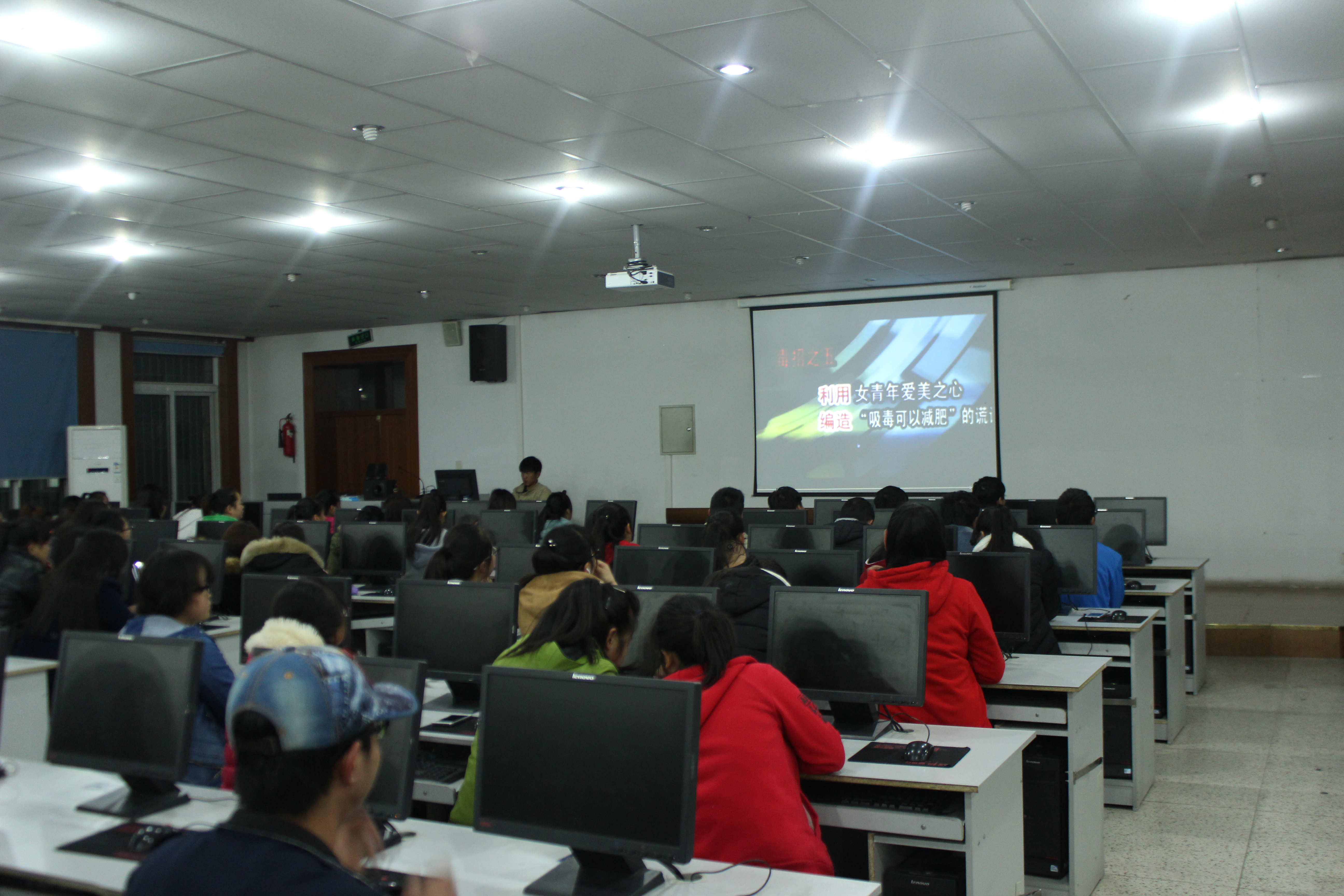 為進一步提高大學(xué)生的禁毒意識和拒毒能力,切實加強毒品預(yù)防教育,貫徹落實《武威職業(yè)學(xué)院關(guān)于開展禁毒“五個一”活動的通知》的要求,12月2日晚8時,電子信息工程系組織學(xué)生代表200余人在尚德樓十一號機房觀看毒品危害的主題電影。