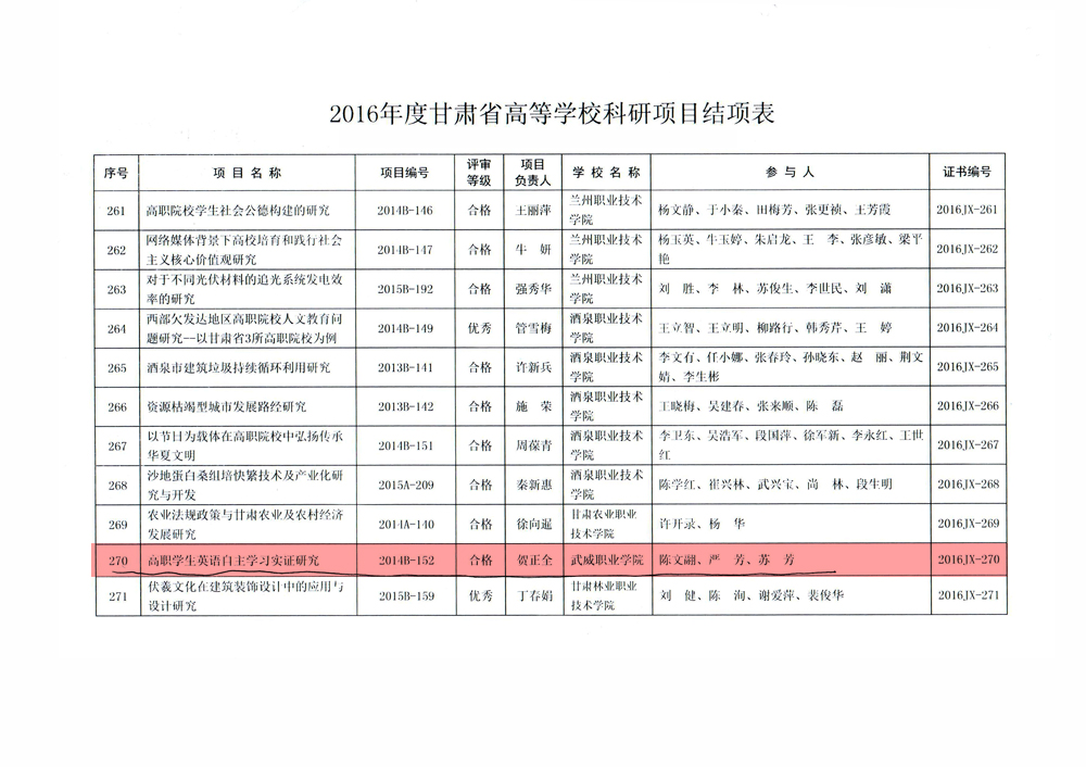 甘肅省教育廳關(guān)于2016年度甘肅省高等學(xué)??蒲许椖拷Y(jié)項情況的通知