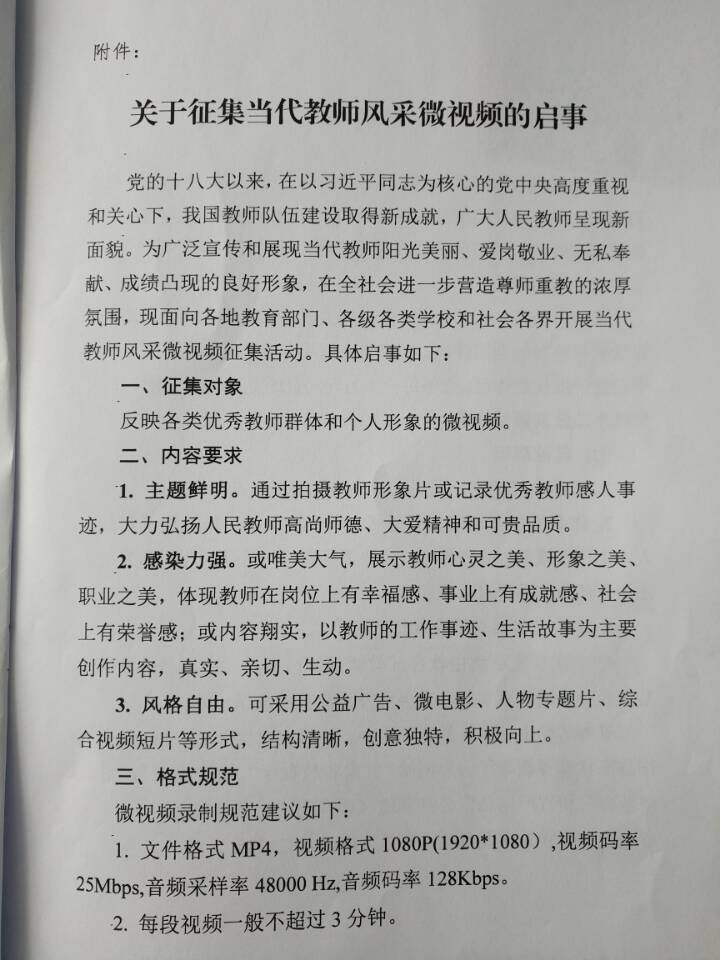 關(guān)于做好省教育廳“征集當(dāng)代教師風(fēng)采微視頻”有關(guān)工作的通知