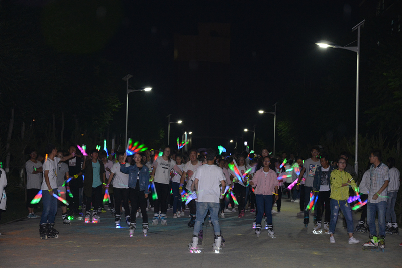 下午三點(diǎn),學(xué)院團(tuán)委宋文龍老師在啟動儀式上做了熱情洋溢的致辭,團(tuán)學(xué)干部帶領(lǐng)參賽選手開啟了本次活動的奔跑。本次活動由“趣味沖關(guān)”“彩虹跑”“熒光夜跑”三個環(huán)節(jié)組成。“趣味沖關(guān)”由一系列小游戲組成,需要大家齊心協(xié)力、互相配合完成,同學(xué)們滿懷激情,在奔跑的同時體驗(yàn)著合作的趣味與快樂。掌聲、笑聲、加油聲此起彼伏,選手與觀眾互動交流,整個過程充滿了愉悅的氣氛。下午五點(diǎn)開啟了整個活動中最精彩的“彩虹跑”,同學(xué)們手捧玉米粉在慢跑中相互揮灑,多彩的玉米粉在他們身上留下了青春的印記。隨著夜幕降臨,精彩的“熒光夜跑”活動隨之開始,同學(xué)們手帶熒光環(huán),舞動熒光棒,在輪滑社成員的帶領(lǐng)下繞著校園跑動。熒光點(diǎn)綴著夜色,歡快的音樂、青春的聲音充斥著整個校園?;顒咏Y(jié)束后,在學(xué)院東門小廣場舉行了自由晚會,同學(xué)們圍成一圈,在主持人的帶動下做互動小游戲、自由演唱,一陣陣歡聲笑語回蕩在整個校園。