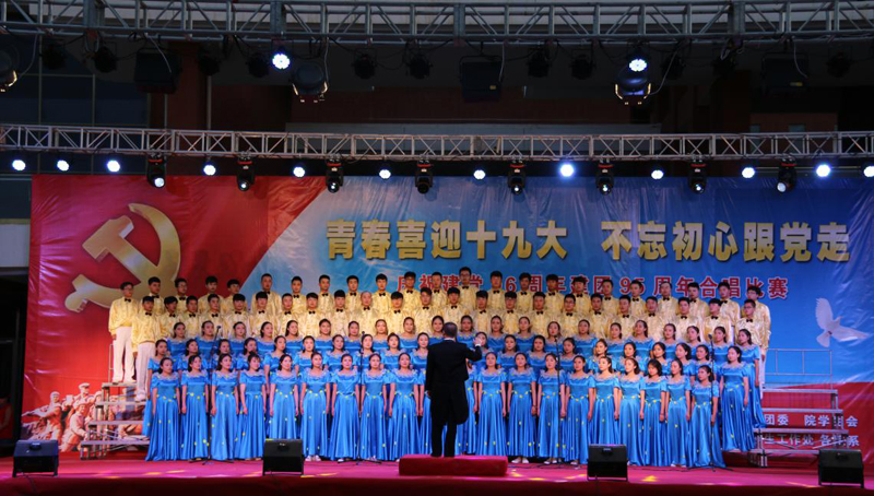 在持續(xù)半個月的合唱訓練中,我系參加大合唱的102名同學和6位老師充分的準備,以積極飽滿的態(tài)度投入到本次大合唱比賽的訓練中,付出了大量的精力,放棄了許多休息時間,展現(xiàn)出了不怕吃苦,堅持不懈,自強自信的精神。比賽中,隊員們齊聚在黨旗下,著裝整齊,精神飽滿,以高昂的熱情、嘹亮的嗓音唱出了對黨的擁戴,對未來的憧憬,贏得了評委及現(xiàn)場觀眾的熱烈掌聲。