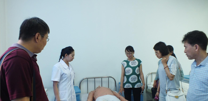 趙鳳舞一行參觀了護(hù)理系的生命科技館、機(jī)能實訓(xùn)室、基護(hù)實訓(xùn)室、內(nèi)外科實訓(xùn)室等醫(yī)學(xué)類實訓(xùn)室,詳細(xì)了解了實驗設(shè)備的運(yùn)行情況和實驗實訓(xùn)課程的教學(xué)管理模式。韓曉萍向來賓們介紹了我院護(hù)理專業(yè)的發(fā)展歷史、課程建設(shè)、師資力量、實習(xí)就業(yè)及籌建實驗實訓(xùn)室取得的成果。