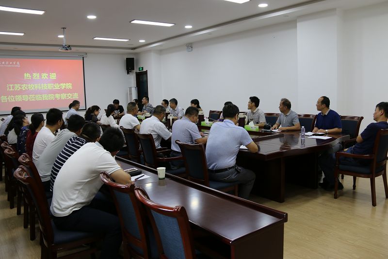 7月31日,江蘇農(nóng)牧科技職業(yè)學(xué)院副院長鄭義一行11人到我院考察交流。我院副院長王永緒、田迎春熱情接待了來賓,會議由副院長田迎春主持,學(xué)院相關(guān)部門負(fù)責(zé)人參加了交流活動。