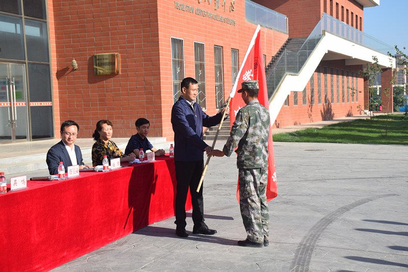 動(dòng)員大會(huì)在莊嚴(yán)的國(guó)歌聲中開(kāi)始,學(xué)院學(xué)工辦負(fù)責(zé)人劉菊萍就訓(xùn)練時(shí)間、訓(xùn)練紀(jì)律要求等方面做了具體的安排。軍訓(xùn)教官代表王雯和新生代表張林旺分別發(fā)言表態(tài)。湯旻安代表學(xué)院在會(huì)上作了軍訓(xùn)動(dòng)員講話。他強(qiáng)調(diào),同學(xué)們要在軍訓(xùn)過(guò)程中要提高認(rèn)識(shí)、端正態(tài)度,真正把軍訓(xùn)作為大學(xué)生的一門必修課;刻苦訓(xùn)練、認(rèn)真學(xué)習(xí),在訓(xùn)練中樹(shù)立不怕苦、不怕累的精神,確保訓(xùn)練效果;嚴(yán)格要求、強(qiáng)化管理,確保軍訓(xùn)工作緊張、有序、安全;講文明樹(shù)新風(fēng)、除陋習(xí)展形象,樹(shù)立良好風(fēng)尚,展示新時(shí)代大學(xué)生的風(fēng)采;以人為本、科學(xué)施訓(xùn),確保軍訓(xùn)工作取得實(shí)效。最后,由湯旻安向軍訓(xùn)教官授旗,標(biāo)志著2017級(jí)新生軍訓(xùn)正式拉開(kāi)帷幕。