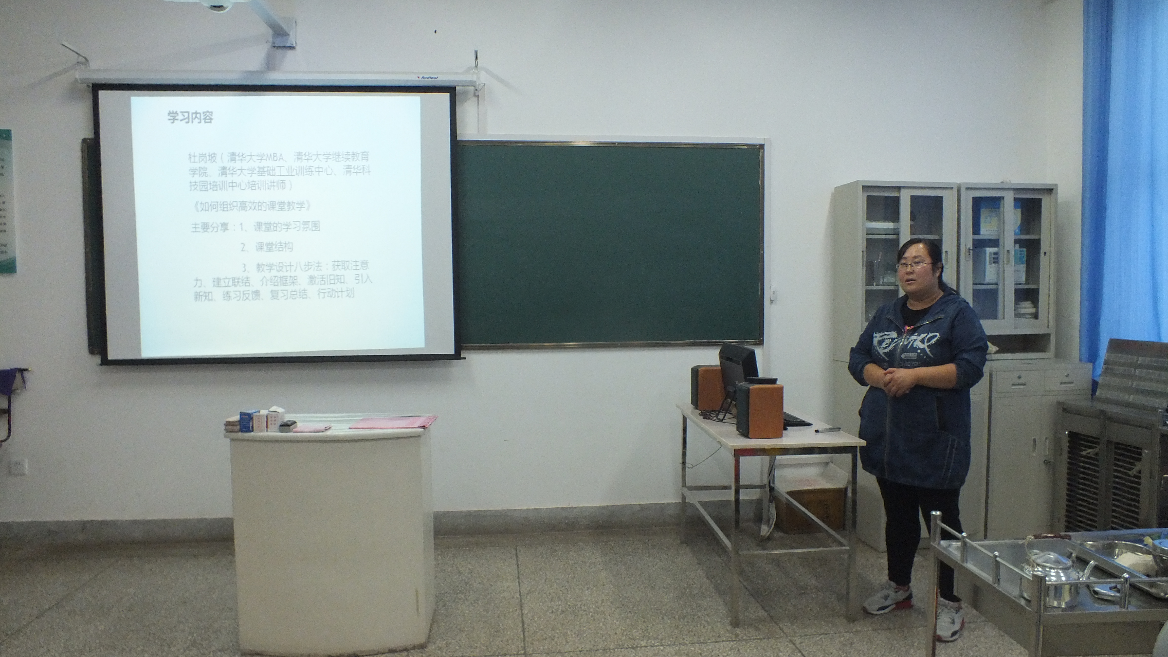去北京參加全國(guó)職業(yè)院校教練式教學(xué)方法與課堂教學(xué)設(shè)計(jì)高級(jí)研修班的梁育霞老師主要匯報(bào)了學(xué)習(xí)到的教學(xué)方法和課堂設(shè)計(jì),一堂精彩的課程要有一個(gè)恰到好處的課堂設(shè)計(jì),好的課堂設(shè)計(jì)又要結(jié)合好的教學(xué)方法,鼓勵(lì)老師們多與經(jīng)驗(yàn)豐富的老師們交流經(jīng)驗(yàn)提高課堂設(shè)計(jì)水平。