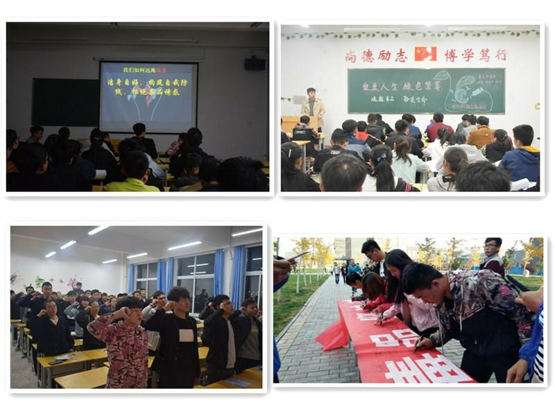學院以引導學生樹立健康人生理念、創(chuàng)造綠色無毒生活為宗旨,認真開展了毒品預防教育“五個一”活動。10月16日晚,各班以問答、演講、辯論、PPT等多種形式開展了以“健康人生,綠色無毒”為主題的班會并莊嚴宣誓——珍愛生命,遠離毒品,堅決禁毒;10月17日晚,學院組織同學們觀看了禁毒影視劇,并設置知識競賽環(huán)節(jié),同學們參加踴躍;10月18日下午,學院在明德樓前舉行禁毒宣傳簽名活動,學院院長董海鷹簽名并與同學們親切交談。活動期間,學院還開展以“健康人生、綠色無毒”為主題的禁毒征文比賽,并對優(yōu)秀作品在學院官方QQ、微信、宣傳欄等平臺進行展示和粘貼。此次禁毒活動宣傳形式廣泛,同學們參與度高,宣傳效果明顯。