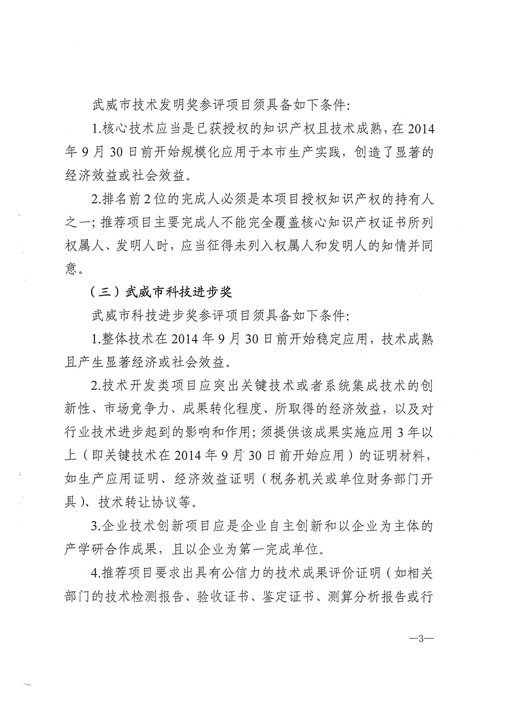 關(guān)于做好2017年度武威市科學(xué)技術(shù)獎(jiǎng)推薦工作的通知