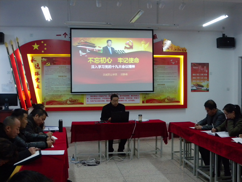 為深入學習黨的十九大會議精神,人文藝術教育系黨總支于2017年11月28日下午在勵勤樓209黨員活動室開展了書記講黨課活動。黨課由胡靜峰同志主講,題目為《不忘初心 牢記使命--深入學習黨的十九大會議精神》,全體黨員參加了此次活動。