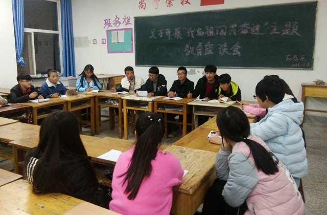 通過組織各班團(tuán)干部開展 “我與祖國共奮進(jìn)”主題座談會(huì),讓團(tuán)干部們對(duì)歷史有了深刻的了解,也讓同學(xué)們在這次座談會(huì)中深刻領(lǐng)悟到身為中華兒女要勿忘恥辱,為實(shí)現(xiàn)中華民族偉大復(fù)興的中國夢而勤奮學(xué)習(xí)。同時(shí),各班團(tuán)支部以形式多樣的主題團(tuán)會(huì),表達(dá)出為了實(shí)現(xiàn)“中國夢”,讓屈辱的歷史不再重演,將要萬分珍惜今天這來之不易的和平生活,努力學(xué)習(xí),不斷進(jìn)取。