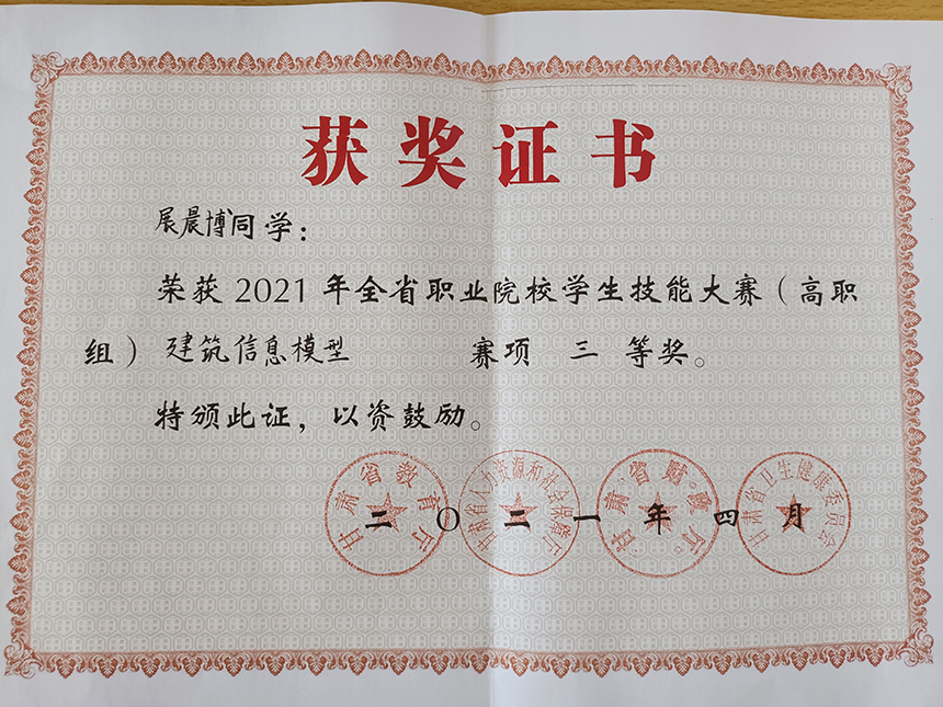 2021年全省職業(yè)院校學(xué)生技能大賽(高職組)建筑信息模式賽項三等獎