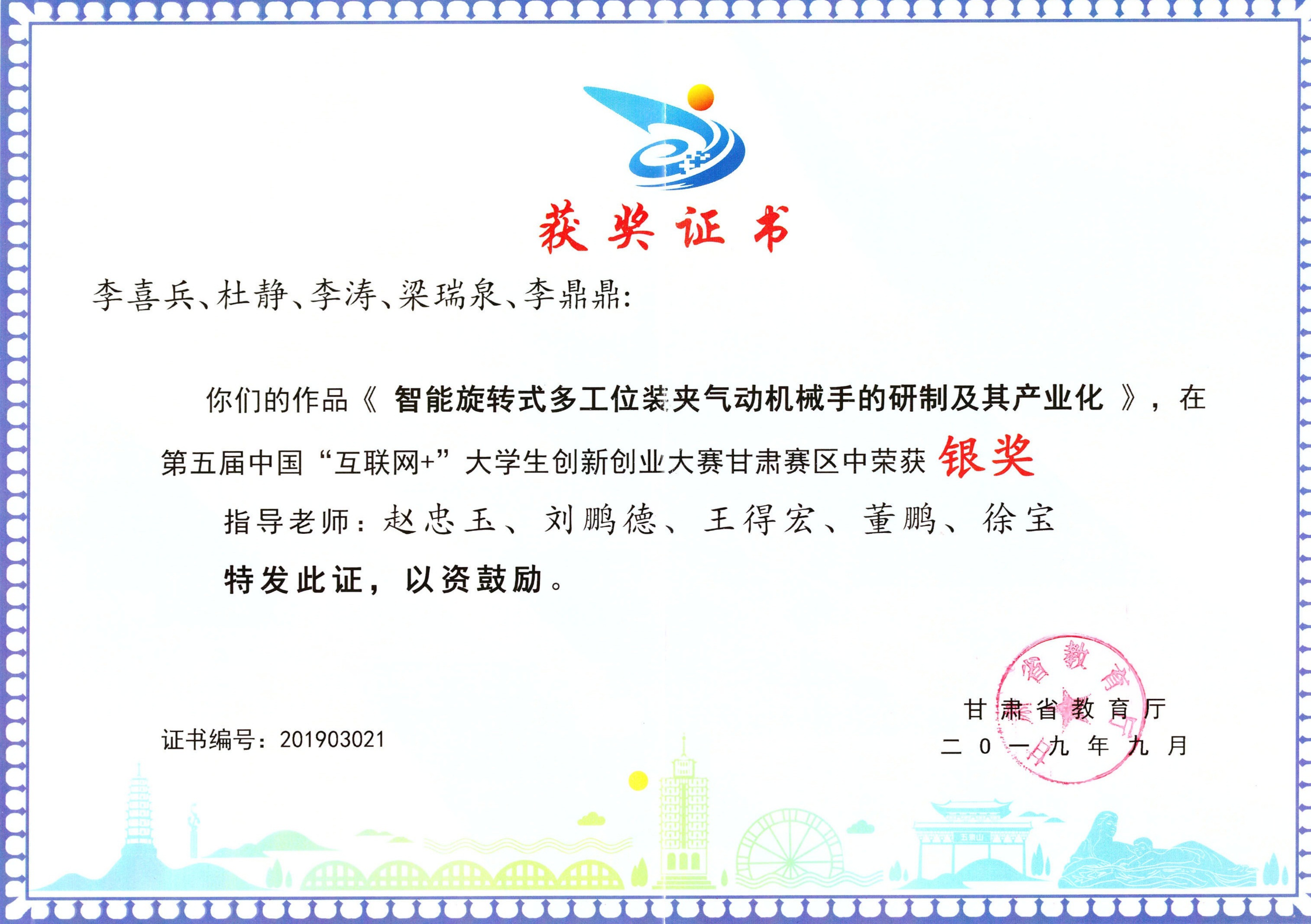 .第五屆中國“互聯(lián)網(wǎng)+”大學生創(chuàng)新創(chuàng)業(yè)大賽甘肅賽區(qū)《智能旋轉式多工位裝夾氣動機械手的研制及其產(chǎn)業(yè)化》