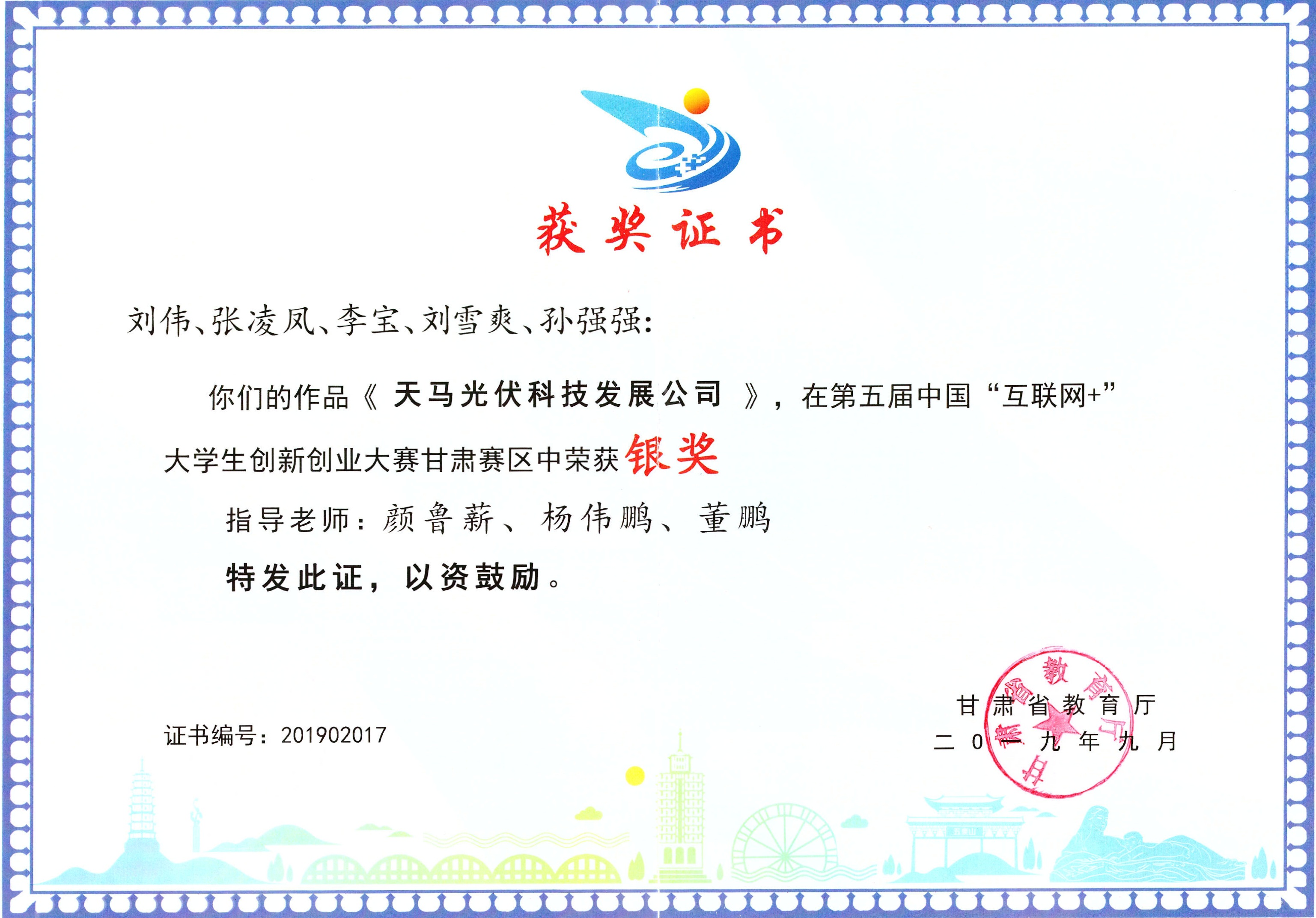 第五屆中國“互聯(lián)網(wǎng)+”大學生創(chuàng)新創(chuàng)業(yè)大賽甘肅賽區(qū)《天馬光伏科技發(fā)展公司》