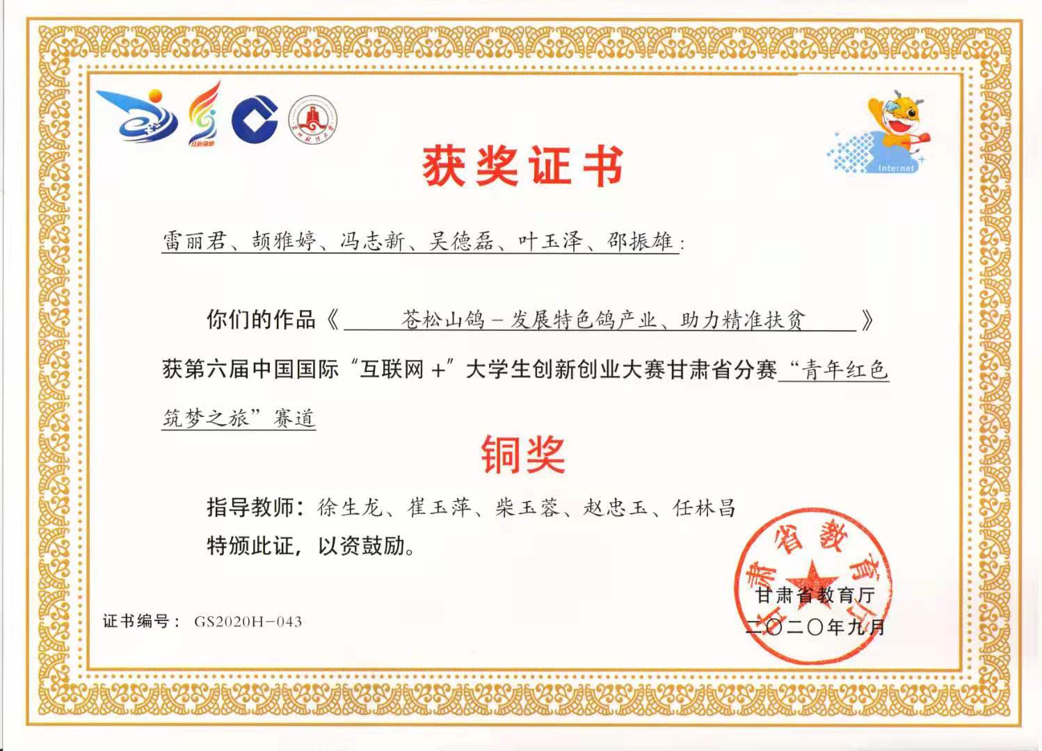 第六屆中國國際“互聯(lián)網(wǎng)+”大學生創(chuàng)新創(chuàng)業(yè)大賽甘肅省分賽“青年紅色筑夢之旅”賽道《蒼松山鴿-發(fā)展特色鴿產(chǎn)業(yè)、助力精準脫貧》