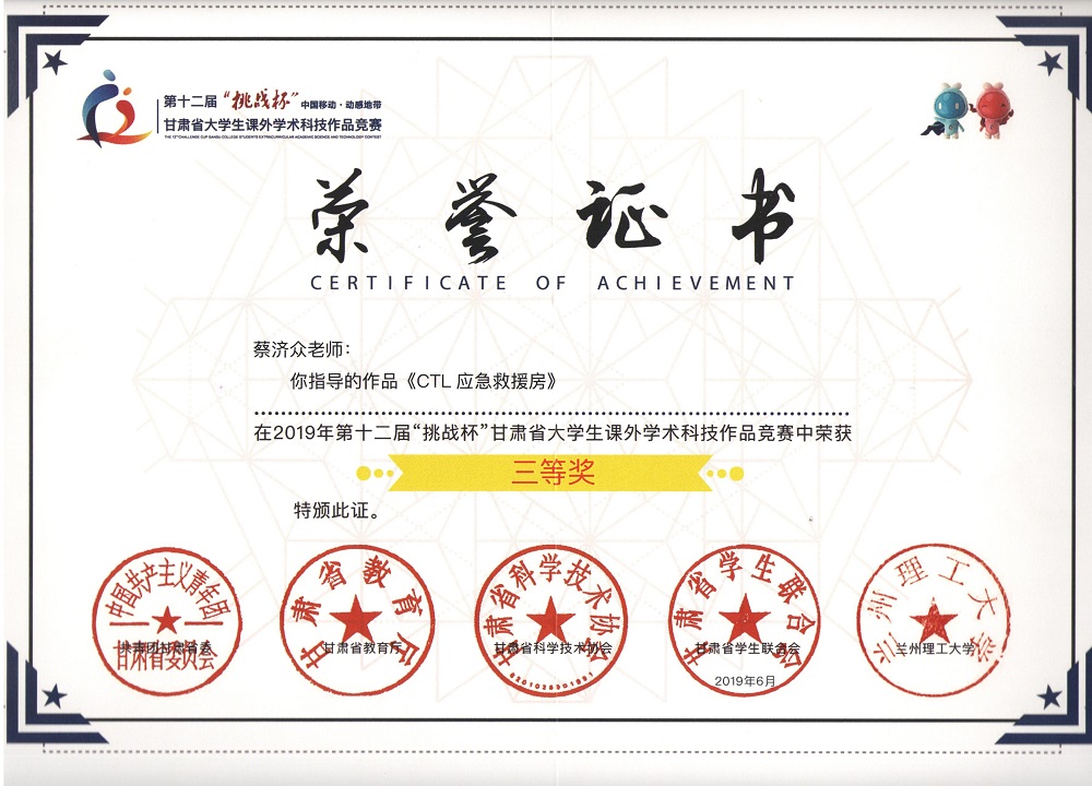 第十二屆“挑戰(zhàn)杯”甘肅省大學生課外學術科學作品《CTL應急救援房》